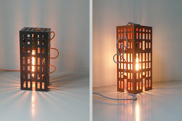 Un parallelepipedo in lamiera di metallo verniciato, solcato da piccole aperture, ricordo di facciate architettoniche.