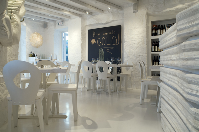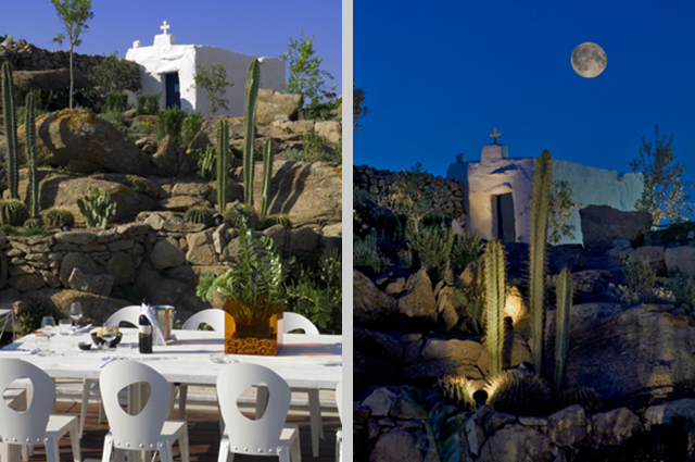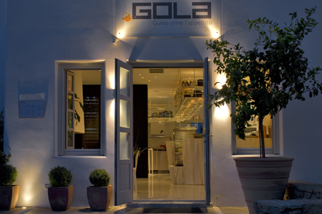 Il Gola Restaurant sorge a monte di Mykonos e si affaccia sulla baia sottostante.